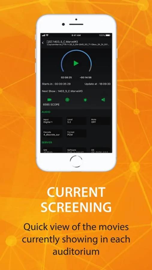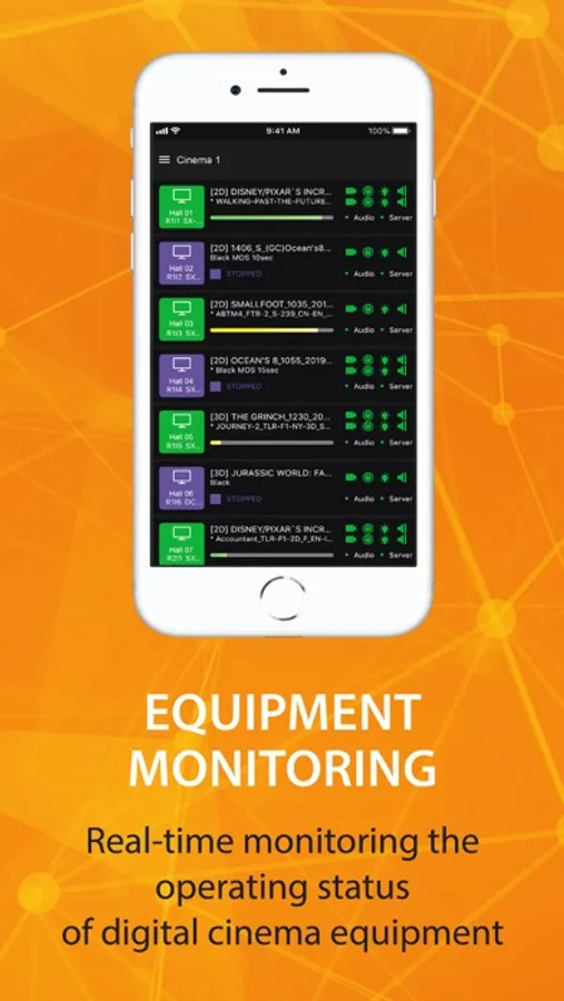 The TmsAware is a cloud-based platform that allows real-time monitoring of cinema operations anywhere, anytime without boundary. With TmsAware, users can remotely access Cinema Automation CA2.0 or TMS to keep track of operations inside a multiplex. Checking the schedule of each screen and the status of cinema equipment through mobile device on-the-go does not only increase efficiency for cinema operators, but also enables prevention of faulty situations. In the case of abnormality, user’s mobile device will receive an alert and operators can take timely measures to attend to the occurrence.
