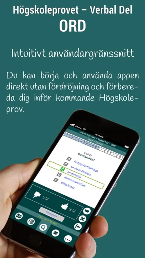 Du kan börja och använda appen direkt utan fördröjning och förbereda dig inför kommande Högskoleprov.
