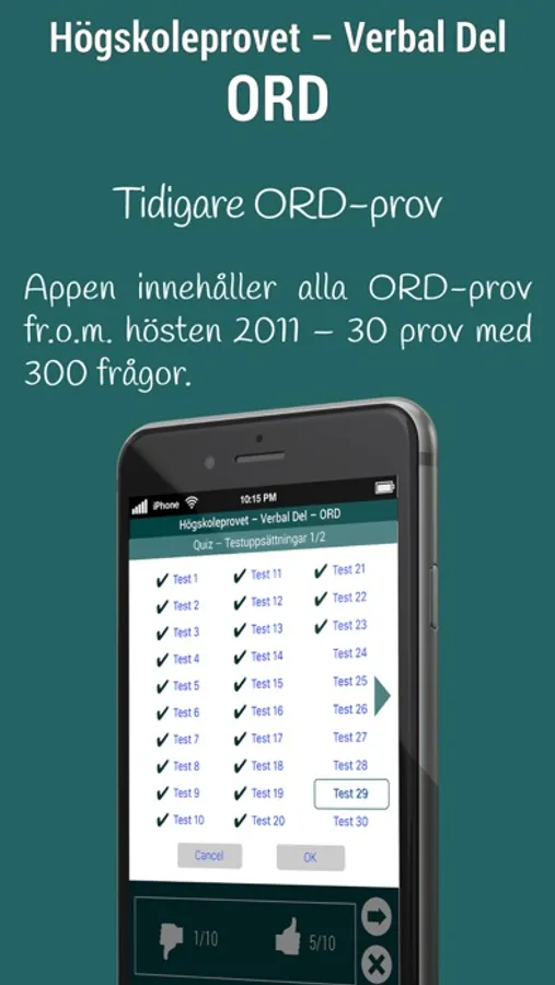 Appen innehåller alla ORD-prov fr.o.m. hösten 2011 – 32 prov med 320 frågor.