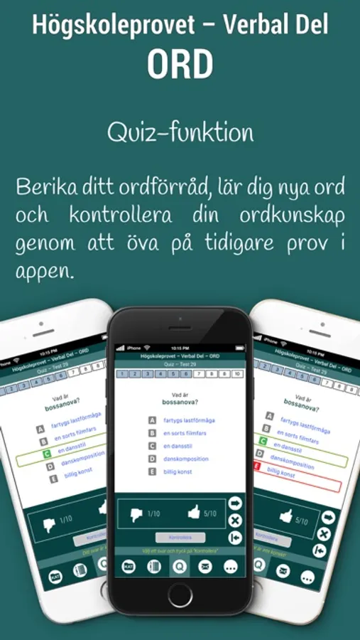 Berika ditt ordförråd, lär dig nya ord och kontrollera din ordkunskap genom att öva på tidigare prov i appen.