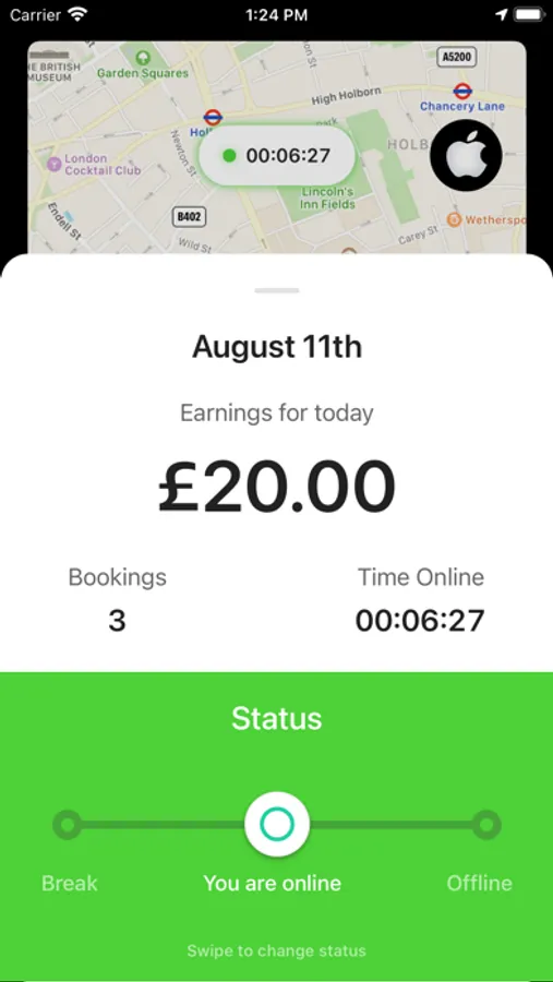 This app allows drivers to receive bookings and progress them using a simple interface.