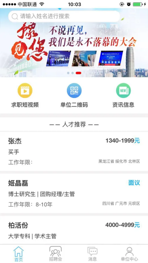 专注求职招聘,支持线上职位发布,关注参加免费线下招聘模式,更多的本地人才等您来,更多惊喜等您发现!