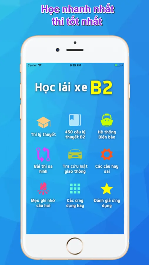 Học lái xe B2 : Ứng dụng bao gồm 450 câu hỏi giúp bạn ôn luyện thi lý thuyết B2, các bộ đề thi thử được cập nhật mới nhất giúp bạn ôn thi hiệu quả và nhanh chóng để đạt được kết quả tốt nhất
