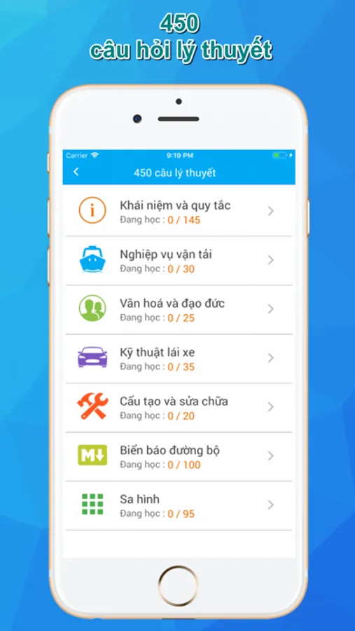 * Hệ thống câu hỏi được chia theo các chủ đề giúp bạn dễ theo dõi và ôn luyện