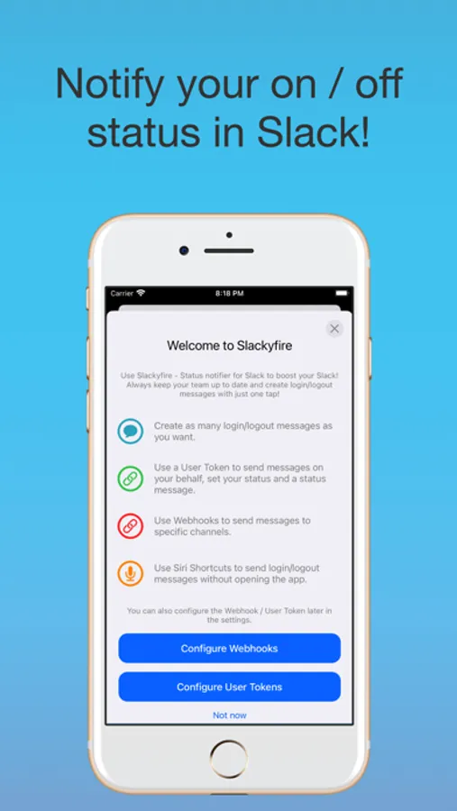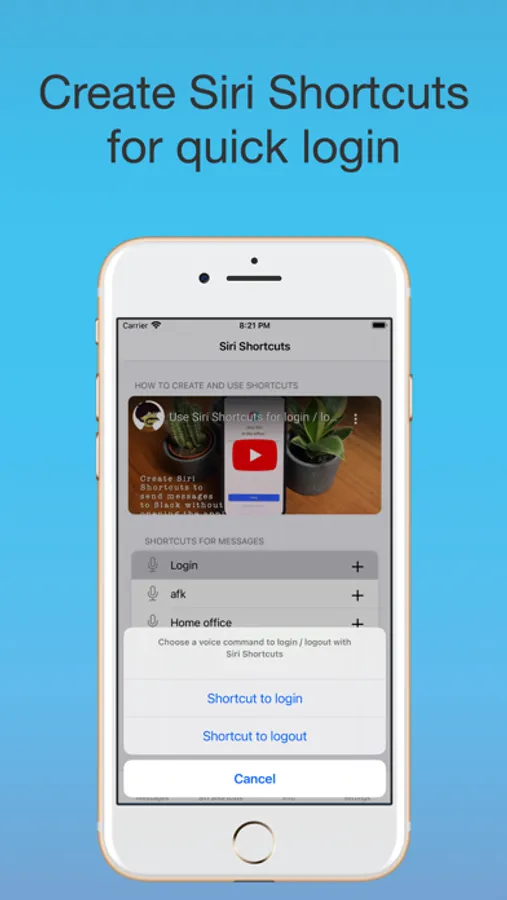 - Use Siri Shortcuts to login / logout to your slack team without opening the app