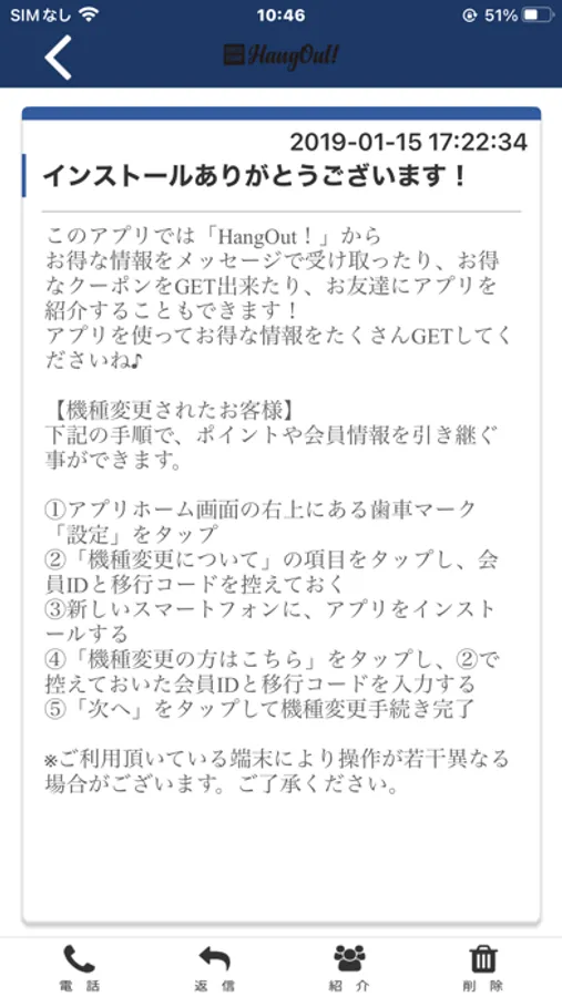 このアプリでは、HangOut!の最新情報の受け取りや便利な機能を使う事ができます。