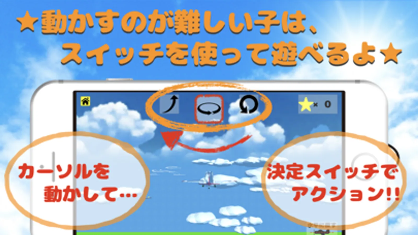 このアプリは、体を動かすのが苦手な子でも楽しめる、飛行機ゲームアプリです。