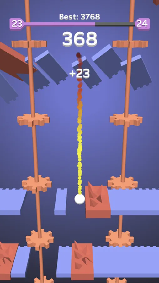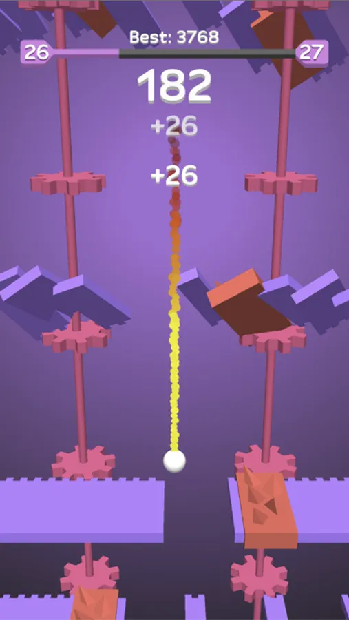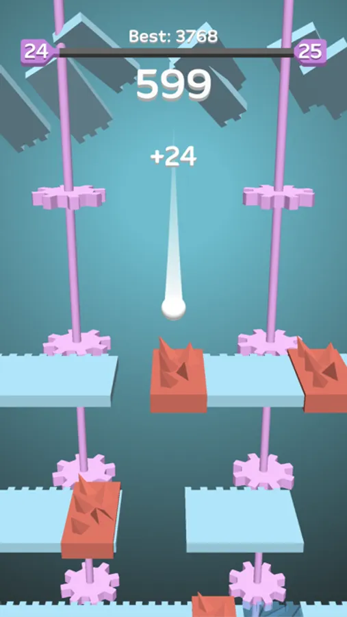Touch the screen and swipe your finger to move platforms under the ball. Try to reach the bottom plate, avoid different colored platforms, speed up and break everything on your way! Simple as that!