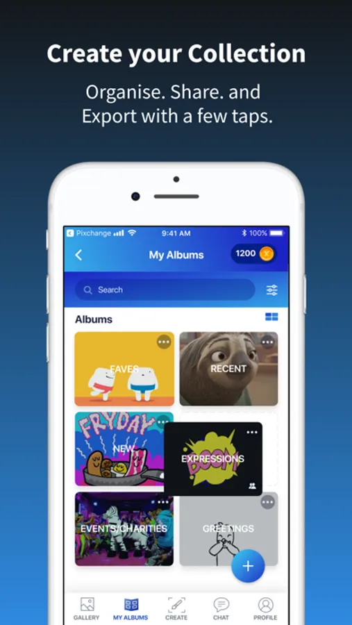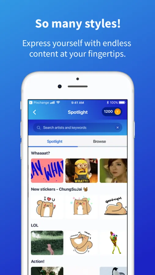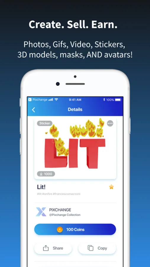 Pixchange is a gif, sticker, and augmented reality marketplace. Create what you want with easy-to-use tools. Browse millions of gifs and stickers in our database. Build albums, and share in any app or device from the Pixchange keyboard.