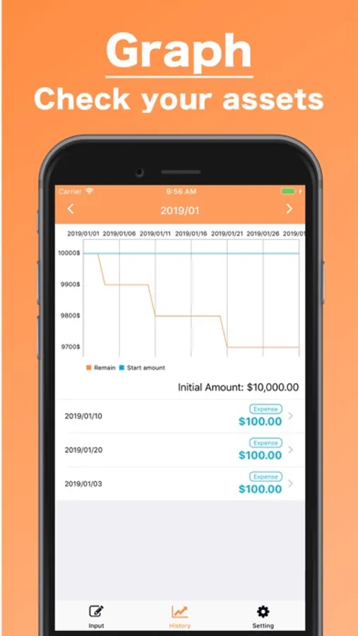 You can visually check the remaining amount by this beautiful graph! As you record on the app, the graph automatically will be updated!