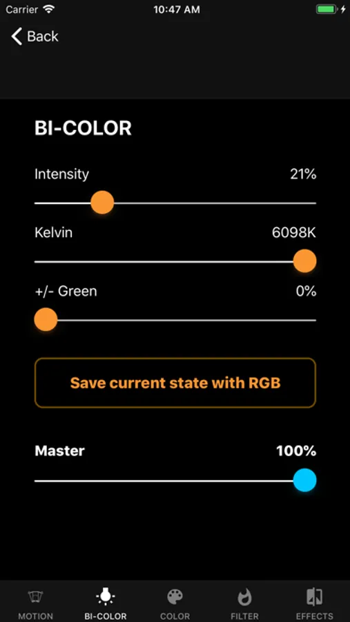 With motion control we are even going one step further. Trust your feelings and decide for yourself if you want to use it professionally or not. Motion control for the new panels is provided with the app and the optional remote control as well. Control dimming or color temperature with a tilt movement of your hand and get astonishing results with this new kind of workflow.