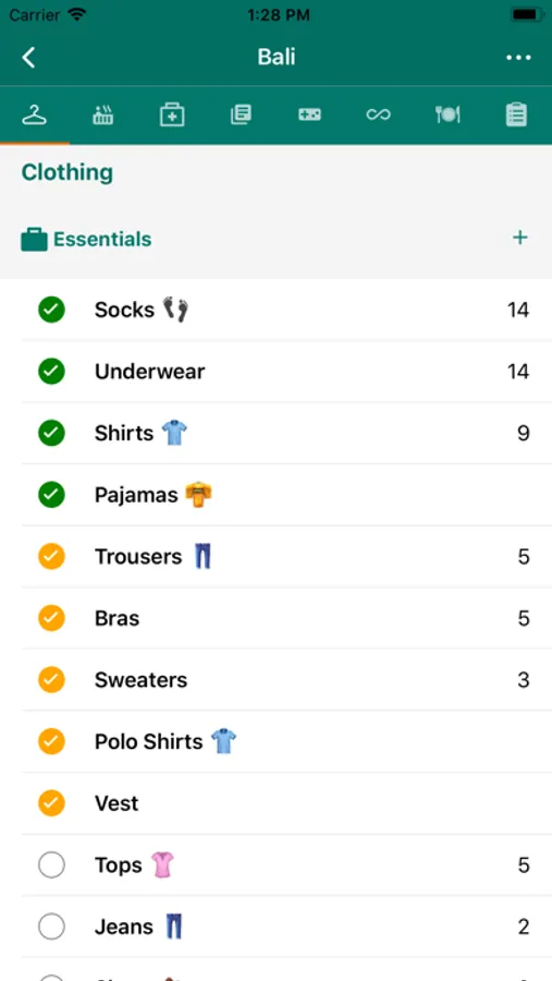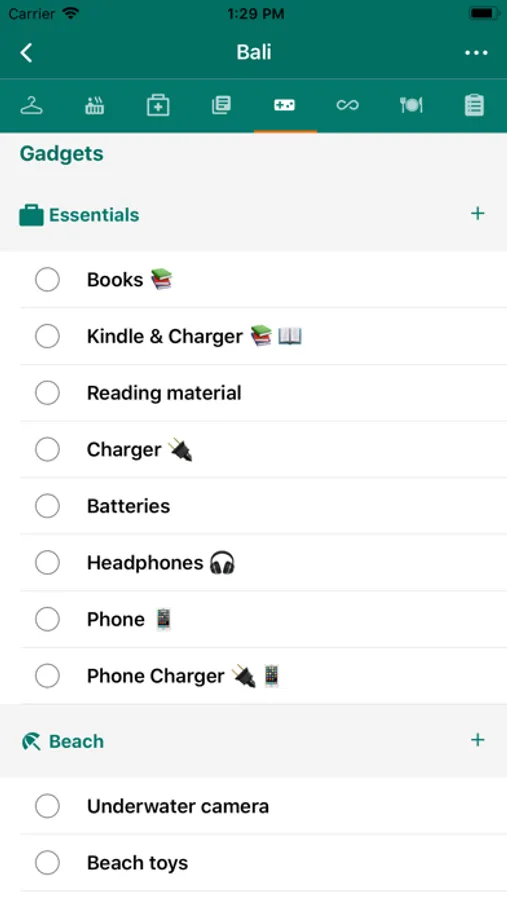 + Check Items that you packed (like a checklist)