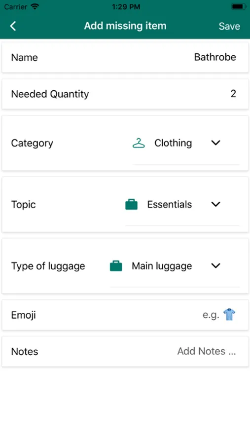 + Add items you want to pack