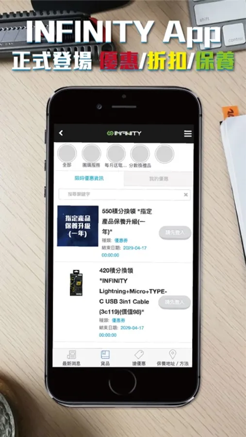 INFINITY Mall應用程式讓您隨時隨地輕鬆搜尋充電產品的最新推廣折扣優惠、保養服務及購買心水貨品、積分結餘、賺取積分及積分換領、貨品資料。無論出街購買或網上購物,同樣方便。