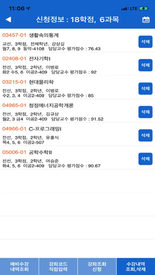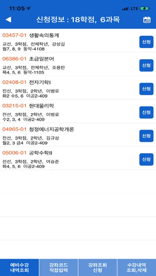 - 수강신청 내역조회