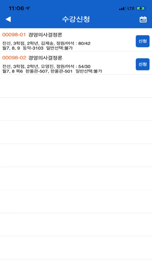 - 강좌 조회 후 수강신청