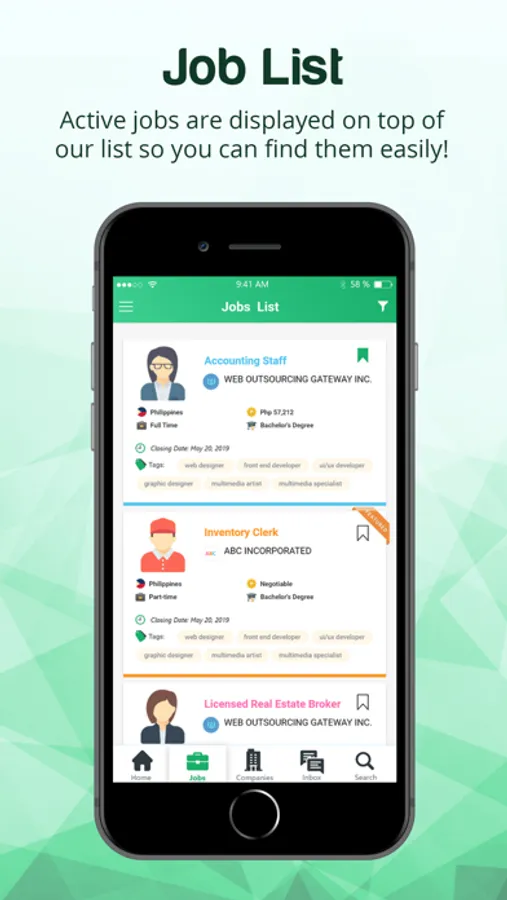 - Browse the vast pool of job advertisements from reputable companies using your smartphones