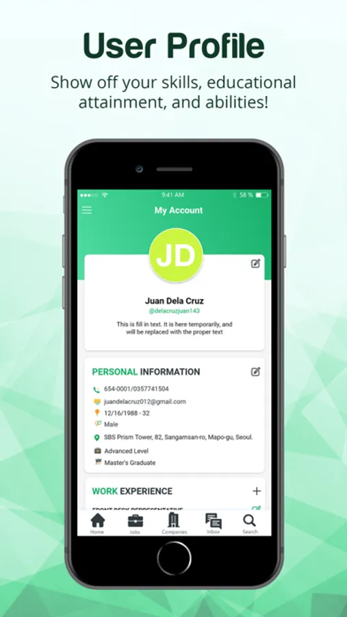 - Apply for a job straight from the app, and show off your skills, educational attainment, and abilities