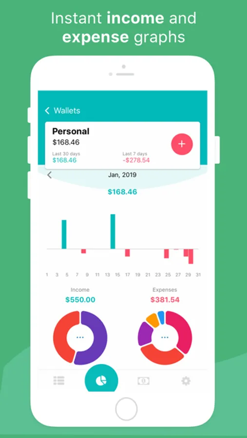Each wallet has a unique daily breakdown of monthly income & expenses; enabling you to analyse your monthly financial activity with ease.