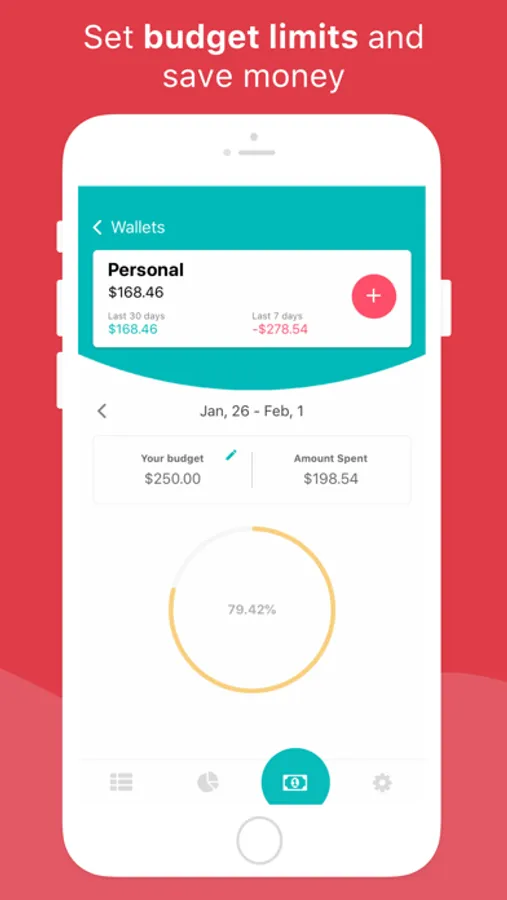 Easily create monthly or weekly budgets to go by, receive notifications for when you are nearing your limit.