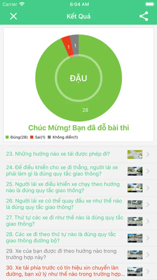 - Xem kết quả, và có thể chia sẻ cho bạn bè.