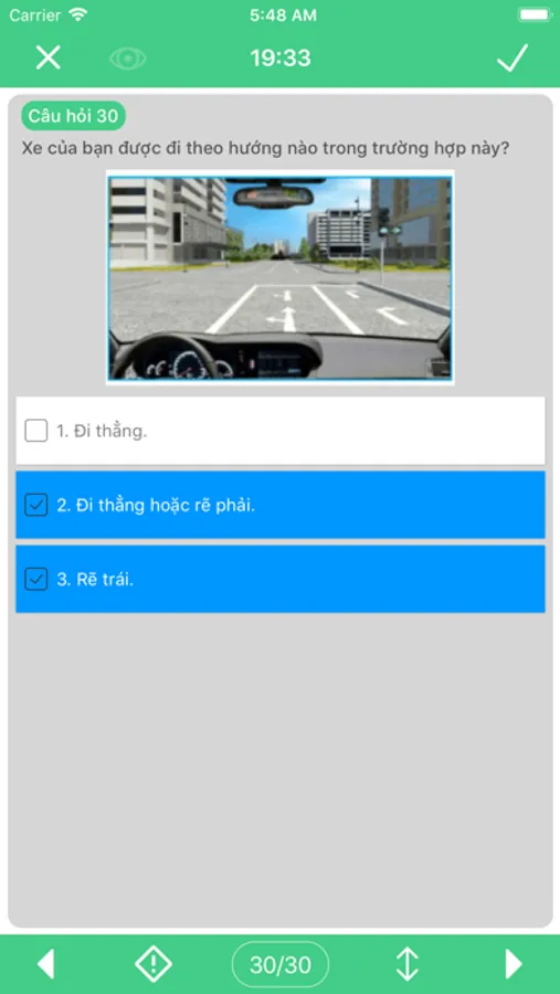 - Bắm vào biểu tượng 'V' nếu bạn đã hoàn thành câu hỏi.