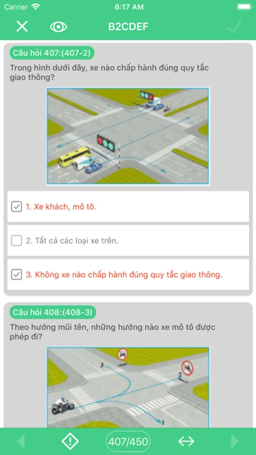 1. Bạn chọn ôn thi, để học 1 lượt hết 450 câu hỏi(50 câu/ngày).