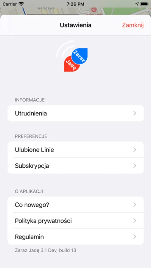 Zaraz Jadę uses public data made available by the Warsaw Capital City as part of the Online Open Public Data.