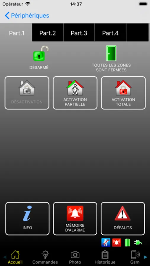 -Affichage du statut des zones du système avec la possibilité de les activer / désactiver;