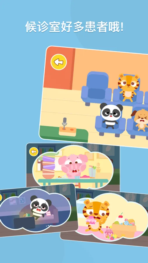 The baby can overcome the fear of the hospital according to the dialogue in the game, enhance the child's awareness of safety protection, and can accurately feedback his own pain