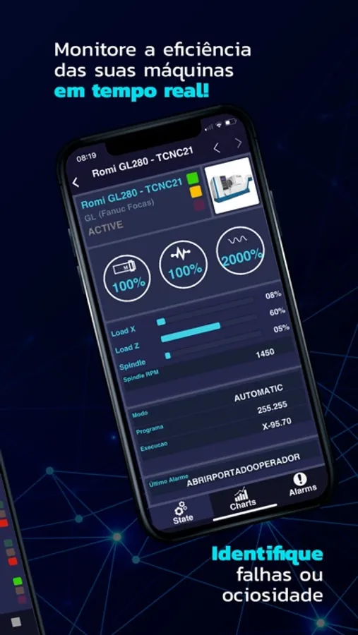 O CNC Monitor é uma plataforma (mobile e web) que captura os dados das máquinas CNC* e os transforma em indicadores da produção e gráficos gerenciais. Uma forma simples e prática de manter o controle da sua fábrica de onde e quando quiser.
