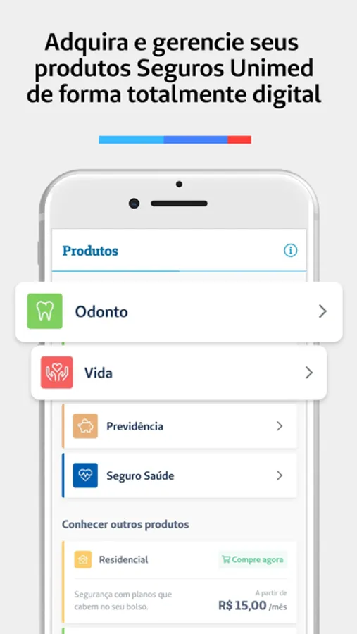 Mais praticidade com cotação de seguros no app: seguro residencial, seguro de vida, seguro RC Profissional, seguro individual, seguro em grupo, previdência e seguro proteção financeira.