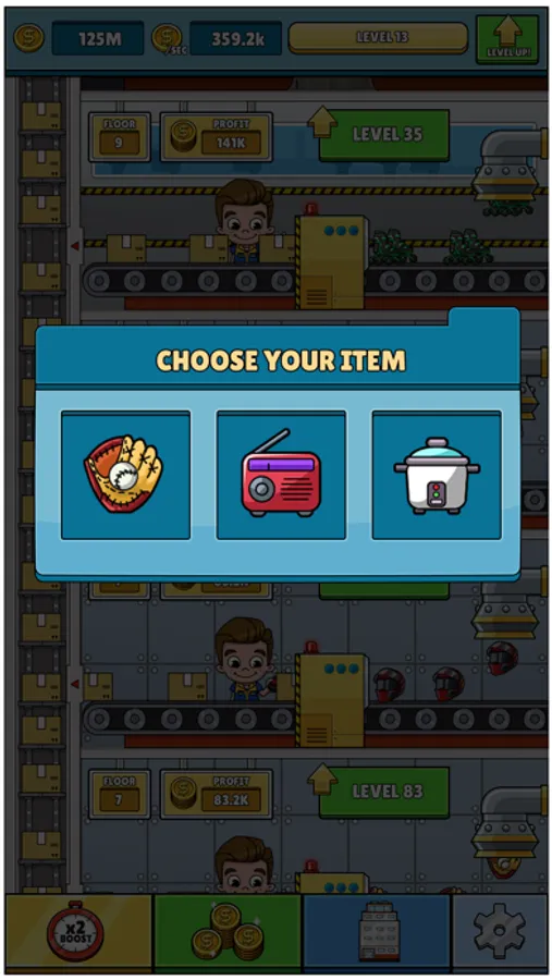 Sell items and grow multiple Factories and sell watch, fidget spinners, tv, smartphones.