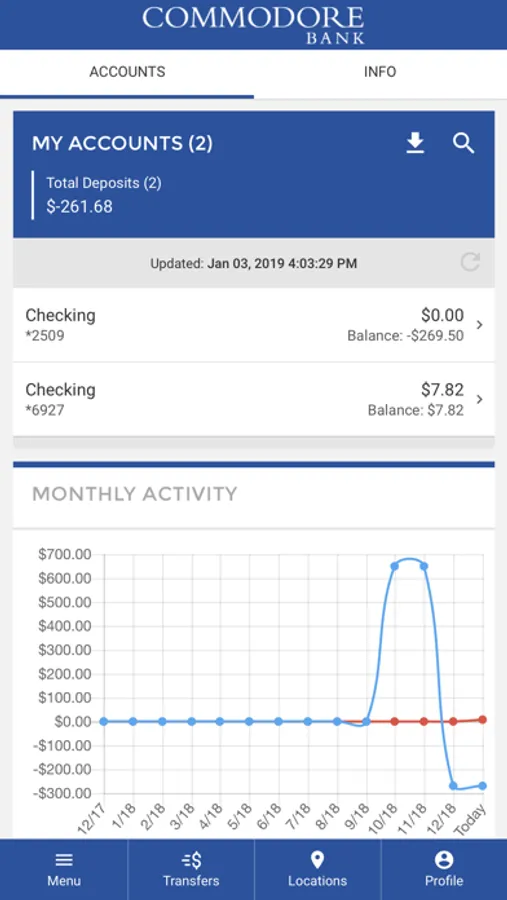 Commodore Bank Mobile Banking App allows you to bank on the go. It’s free to download and offers quick access for managing your bank accounts. Check your balances, transfer money, and locate ATMs and banking centers with just a touch. Our app is fast, secure and free. Use your current login information to start banking today.