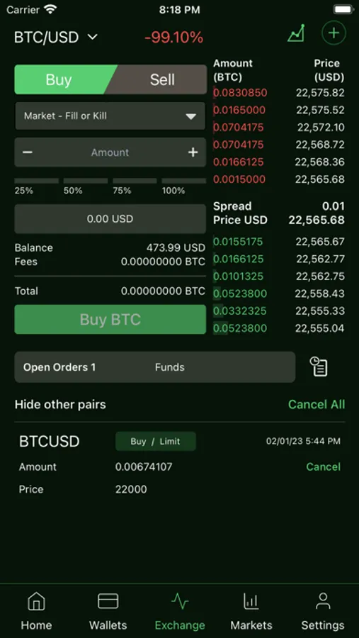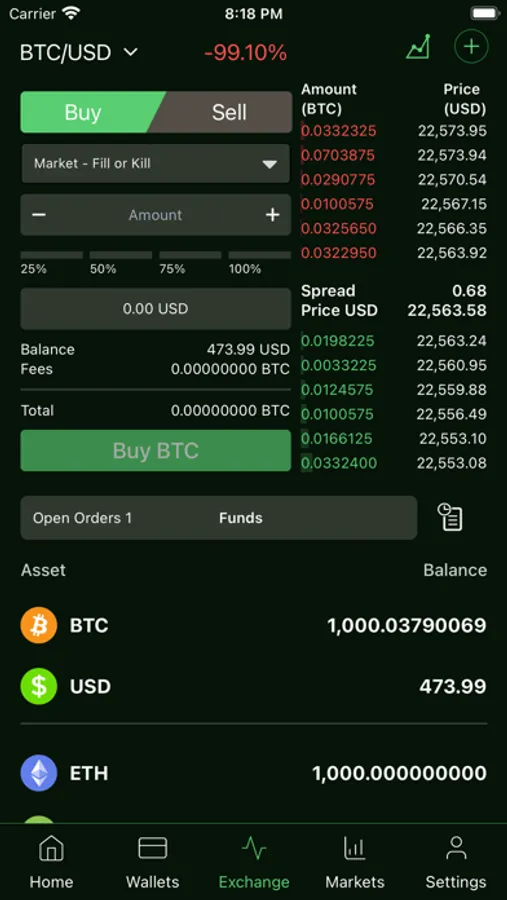 Order Book: Our powerful live order book updates in real-time and displays buy and sell orders with live spread calculation so you can always lock in the lowest spreads and get the best deal. Our order system also automatically calculates fees and includes them in the order price so you always know that what you see is what you’ll pay. For larger orders, we offer the ability to report block trades to guarantee that the market won’t move against you before your order gets filled. Available order types for both regular and block trades include market, limit, stop, and six others.