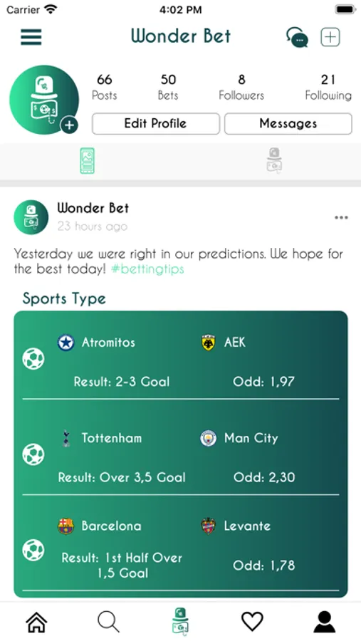 Feel free to follow other people in the app. Meet them. Chat with them. See their posts. Find what they are planning to bet and why not bet the same yourself. This is some list of features we provide.