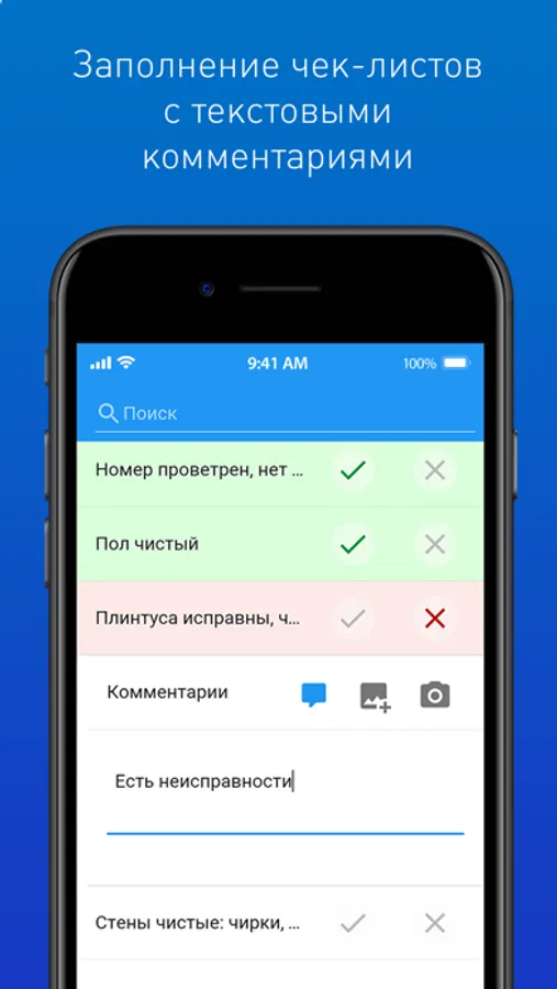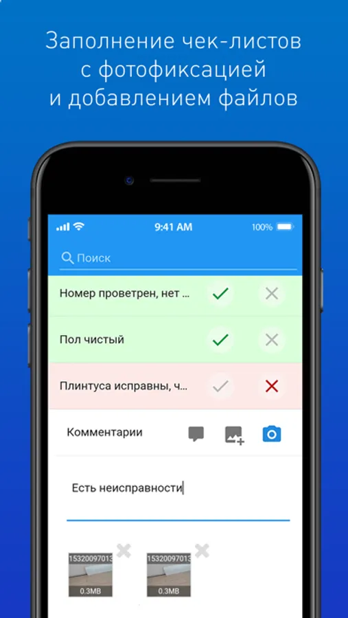 • Identification of inconsistencies with the ability to leave a comment, attach a file and photofixation.