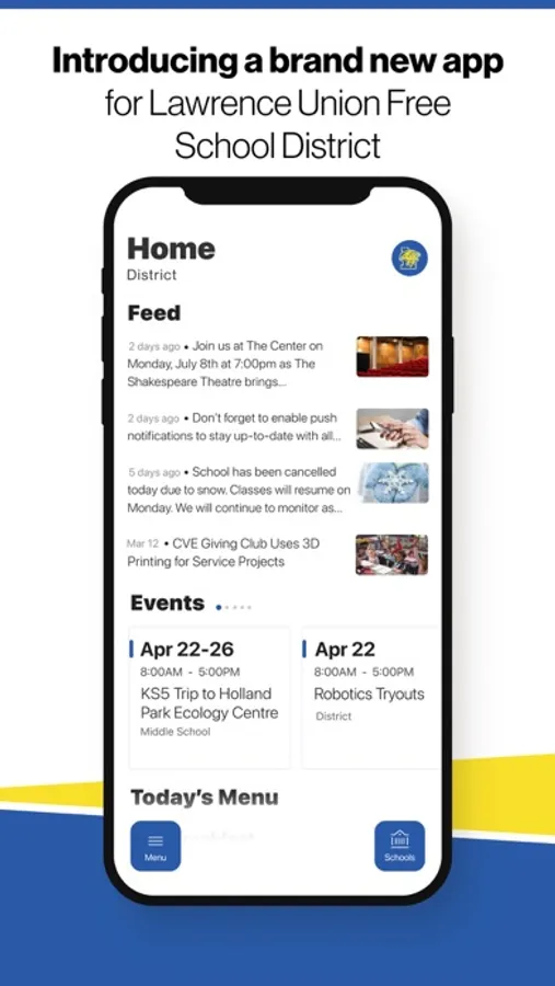 The official app for Lawrence District 15 allows users direct access to the most recent news, announcements and event calendars. Customize the app to display information relevant to a specific campus and to receive important notifications from the district. Users may also access the directory of district faculty and staff, view dining menus, find the location of district events, contact campuses and departments, follow athletic scores and updates, and much more.