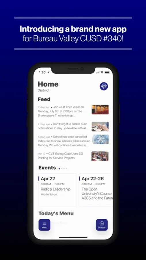 The official app for Bureau Valley CUSD #340, IL allows users direct access to the most recent news, announcements and event calendars. Customize the app to display information relevant to a specific campus and to receive important notifications from the district. Users may also access the directory of district faculty and staff, view dining menus, find the location of district events, contact campuses and departments, follow athletic scores and updates, and much more.