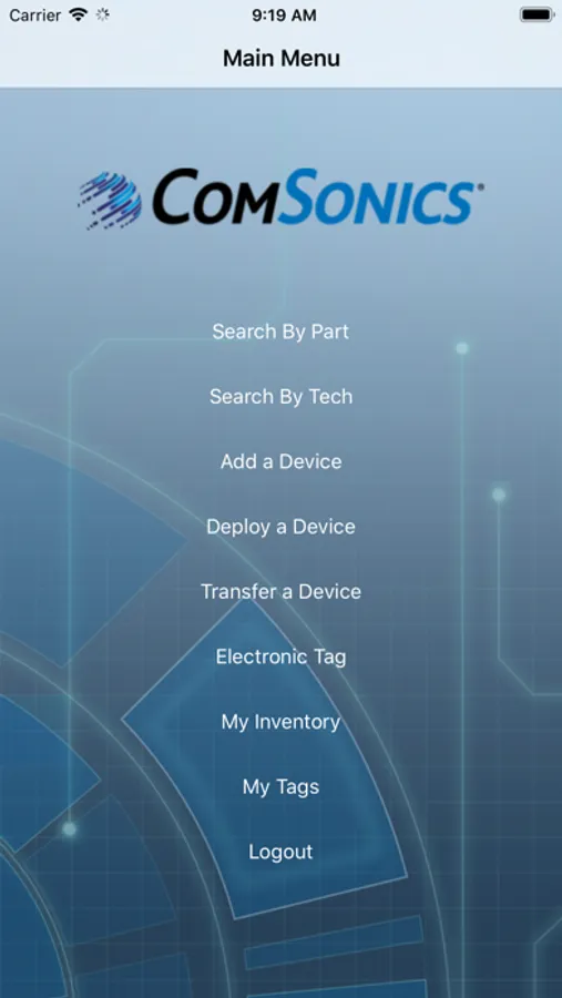ComSonics Inventory Tracking app allows for easy and intuitive area and region based inventory management.