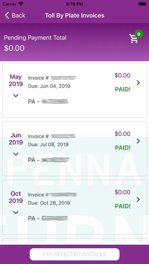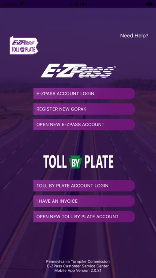 PA Toll Pay Screenshots