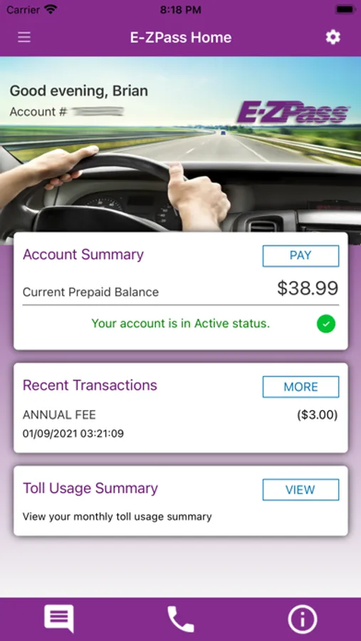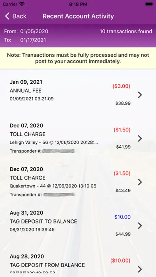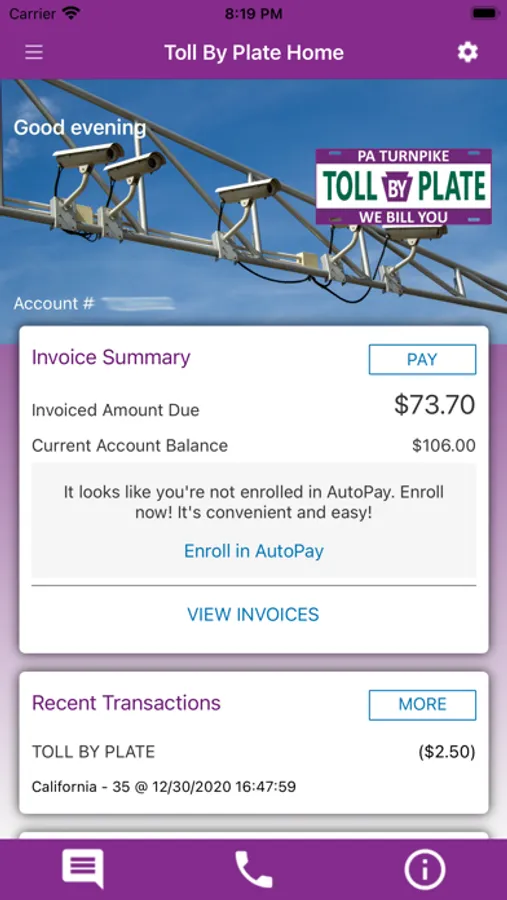 View and manage your Pennsylvania Turnpike E-ZPass or Toll By Plate account