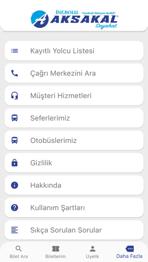Aksakal Sayahat'ın şehirlerarası ulaşım biletlerinin satılmasını sağlayan bir iPhone uygulamasıdır.