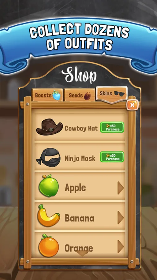 • Collect Seeds and Golden Cherries to unlock dozens of skins and new Skewerz along the way