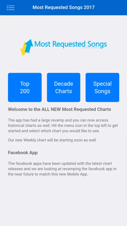 The app allows you to check the most requested songs made on our servers.