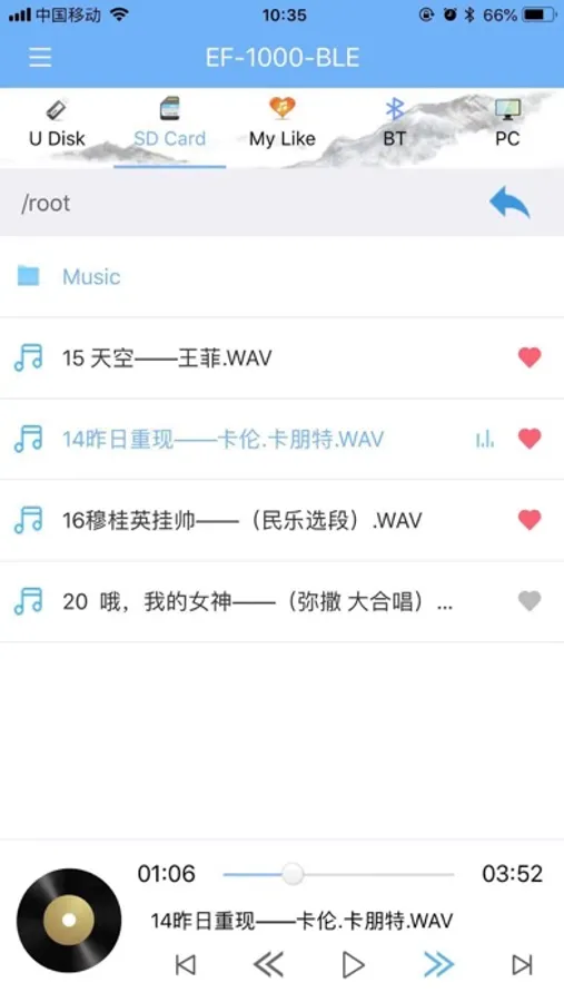 *切换音源:蓝牙、U盘、TF卡、PC、模拟接口、数字接口等