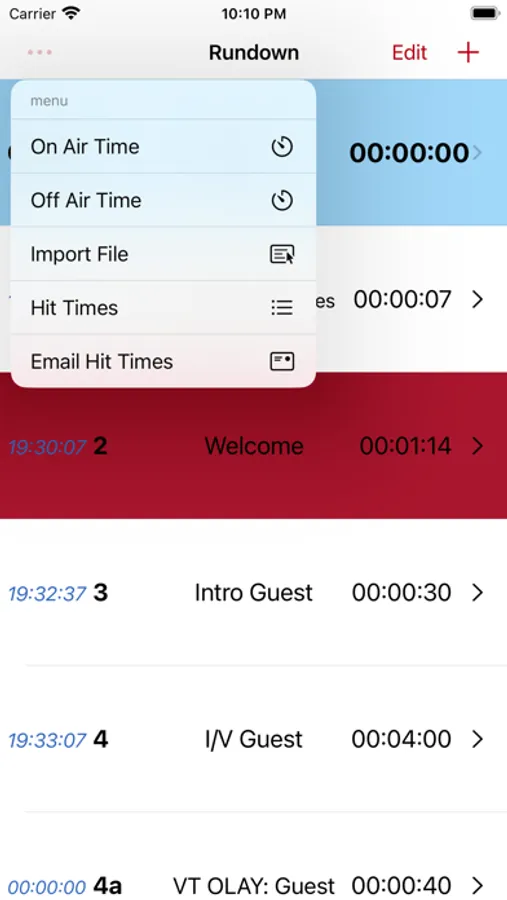 Rundown can either be imported quickly as a .CSV file or directly entered into the app. Please check our website for a .CSV template.