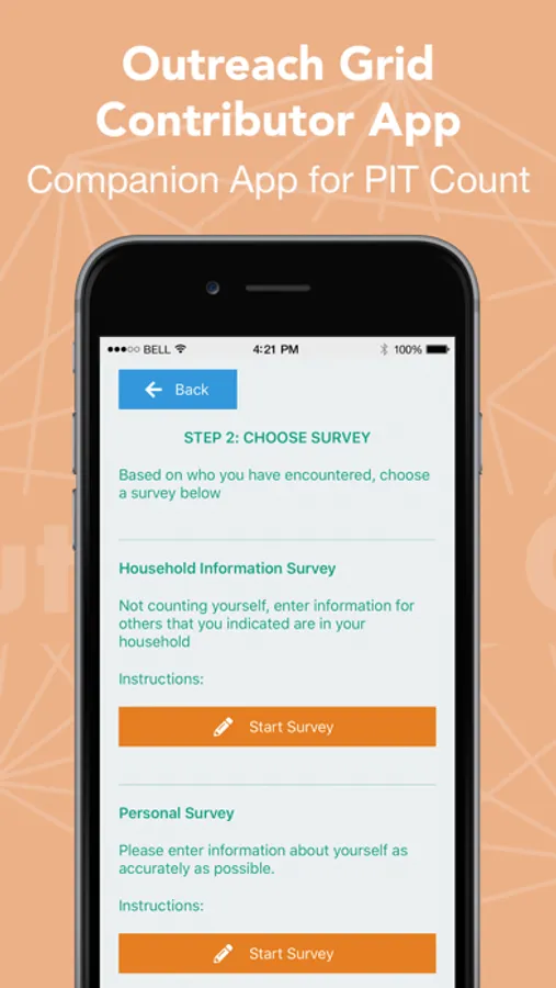 Welcome to Outreach Grid’s Point-in-Time Count Survey App! On the day of the count, log in, join your event, and start your community’s survey.