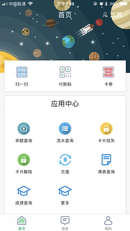 校园通平台是新中新和四川农信一起打造的一款面向校园的一卡通服务APP,在传统卡消费、认证的基础上增加了二维码功能,为校园用户提供专业、全面的移动一卡通服务。【校园卡管理】提供全面的校园卡服务,充值、信息查询、账单查询、流水查询、挂失/解挂、失卡招领、校园卡在线申请、校友注册等【校园缴费】项目缴费、电费、网费、辅修费、等级考试费、党团费、培训费、学费【校园预订】为校内餐厅、场馆、会议室、自习室等场所提供预订服务