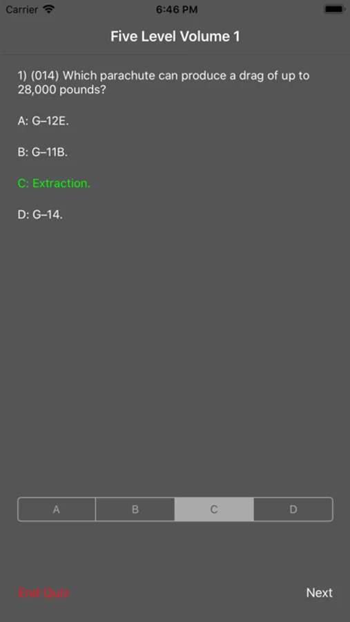 Take practice quizzes with however many questions you want. Questions (and their answers) are presented in a random order.